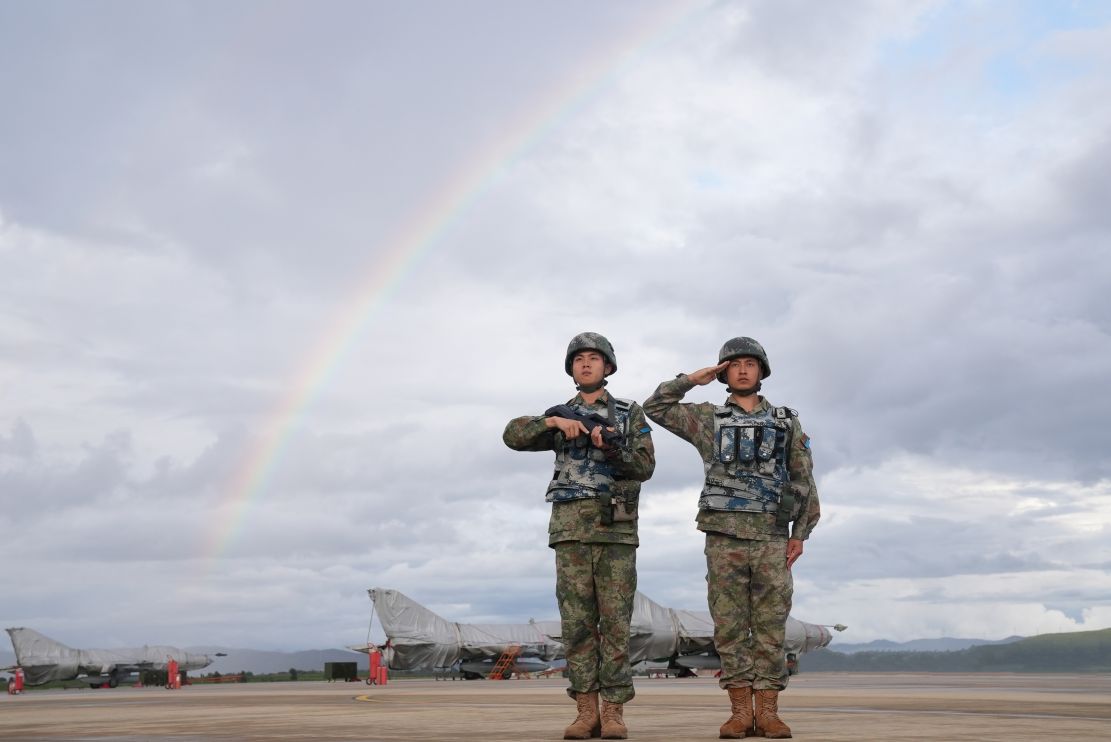 氣象兵不舍晝夜全時預報天氣、場務兵清掃機場跑道堅持日常驅鳥、警衛兵緊握鋼槍守護戰鷹、四站兵全時待戰為戰鷹補充能量……場站各個保障分隊為戰鷹隨時騰飛保駕護航。