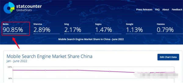 不管是從PC端還是手機(jī)端還是其它端,2022年上半年,百度在中國搜索引擎市場的占有率說一騎絕塵沒有錯(cuò)吧?在中國搜索引擎市場它絕對是大哥大,全球呢?