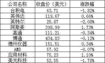 美股中的主要芯片股表現如下: